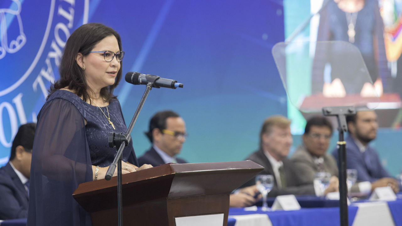 La rectora Cecilia Paredes dio las palabras de apertura en un discurso en el que expresó que es fundamental tomar en cuenta que la cultura, la economía, las interacciones sociales y el contexto geopolítico regional y mundial tienen una influencia directa en las necesidades que las universidades deben satisfacer.
