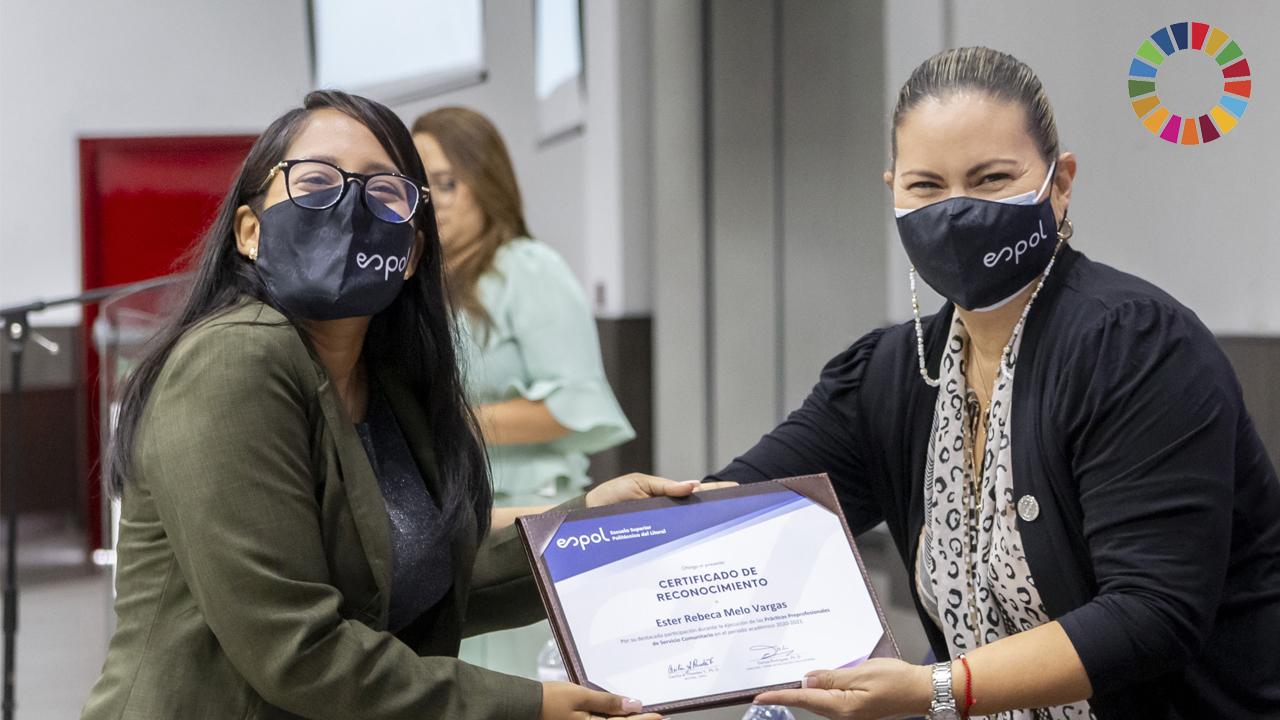 La profesora e investigadora de la Facultad de Ingeniería en Mecánica y Ciencias de la Producción (FIMCP), Emérita Delgado, recibió la distinción como Mejor Directora de Proyecto de Servicio Comunitario. Ella indica que su proyecto se enfoca en la educación para el desarrollo sostenible. “El proyecto es sobre la formación a los profesores de unidades educativas para que, a su vez, eduquen a sus estudiantes a partir del contenido que damos a través de los módulos de Nutrición, Agricultura Sostenible y Energía y Eficiencia energética”, manifestó.